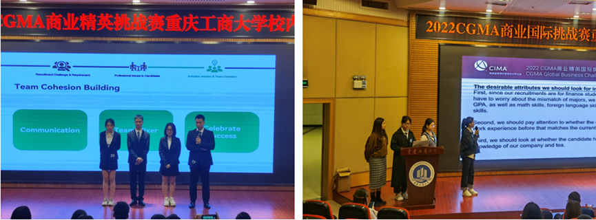 2022年4月16日晚,由必赢766net手机版承办的“2022CGMA商业精英国际挑战赛”重庆工商大学校内赛,在博智楼7200报告厅隆重举行。国际注册专业会计师公会华中及西南区高级专员陆子鸣先生,楷柏财经学术总监周洁女士、CIMA学科带头人张静女士、专任教师朱建涛先生、高校项目运营部主任李春凤女士,必赢766net手机版郝颖副书记、黄辉副院长,学团办彭文涛主任、综合办刘斌副主任、国际项目部陈利主任、会计系幸素园副主任,以及张婉君老师、李晓羽老师,国际项目班辅导员罗海蓉老师,国际项目部行政秘书张悯弱等出席了本次活动。