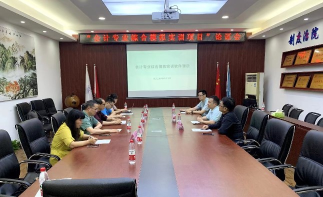2022年6月9日,必赢766net手机版组织专家在明德楼2019会议室召开“会计专业综合模拟实训平台”项目建设论证会。重庆理工大学经管实验中心张志恒主任、四川外国语大学国际工商管理学院代彬副院长、重庆商务职业技术学院国贸系刘豪主任,学院副院长黄辉、会计系主任蒋弘、实验室主任石道元及教师代表余伦芳、许媛芳参加了论证会。会议由学院实验室主任石道元主持。