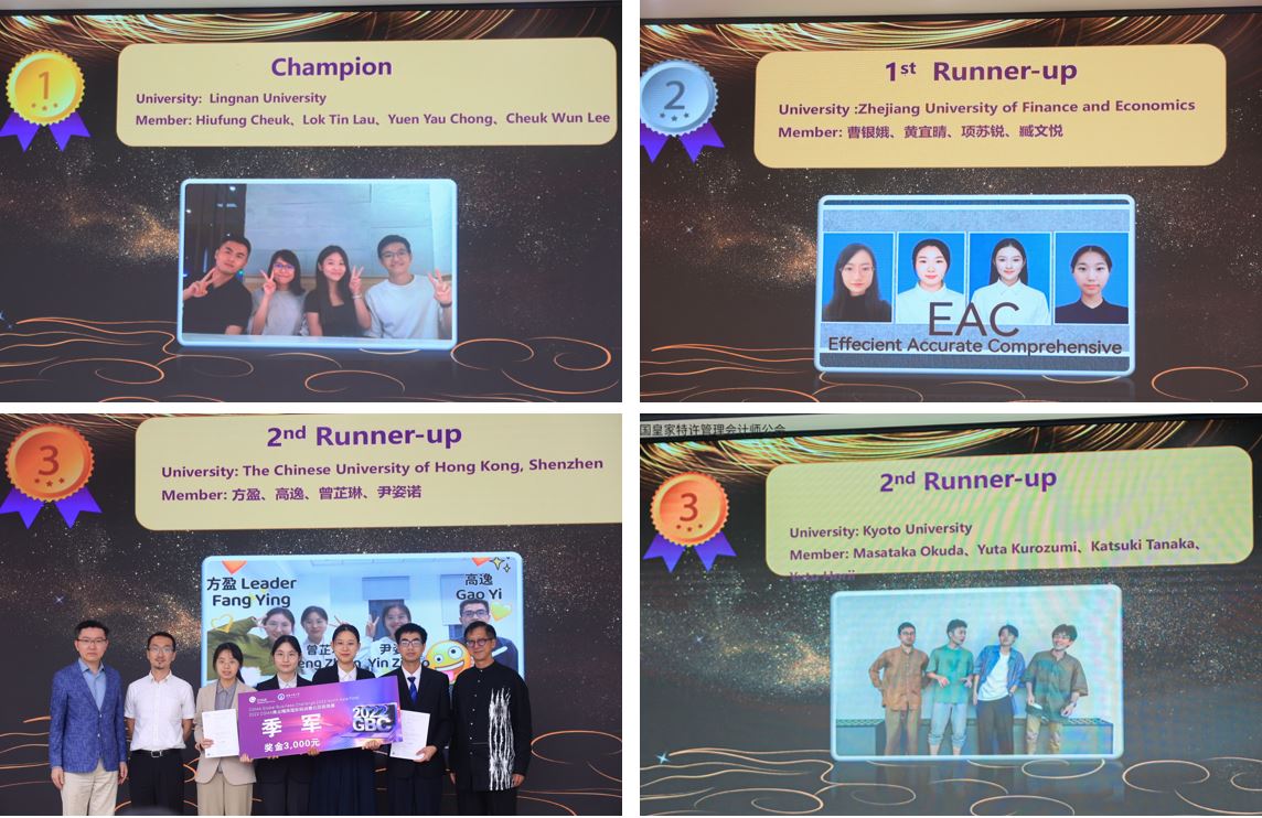 评委们认真记录、严格评审、集体商议,最终香港岭南大学404队夺得冠军,亚军及季军则分别由浙江财经大学EAC队和香港中文大学(深圳)Aduiduidui队、日本京都大学Kyoto Kailba队获得;“最佳商业潜质个人奖”则由404队的Hiufang Cheuk同学获得;优胜奖获奖队伍为重庆工商大学Navigator队和Polaris队、东北财经大学Elite队、广东外语外贸大学Illusive Stars队、澳门大学Excellence队、蒙古财经大学Ufecomptes队。本次北亚极限赛评委、普华永道中国科创及私营企业服务部合伙人王天若还当即对11位参赛选手发出了就职邀请,其中包括我校两支团队的5名同学。