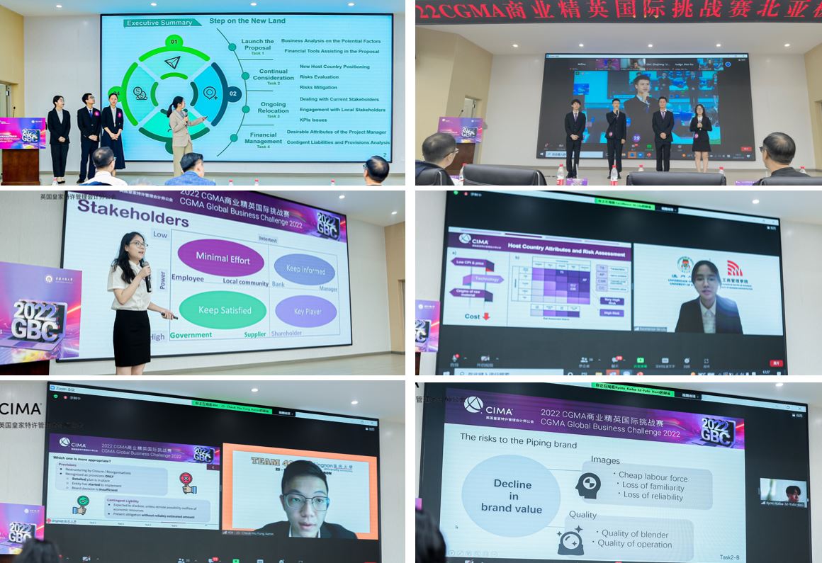 由国际注册专业会计师公会(AICPA & CIMA)主办、重庆工商大学承办的“2022 CGMA商业精英国际挑战赛”北亚极限赛,于7月10日在我校明德楼1019报告厅成功举行。本次比赛采用了线上线下相结合的方式,并面向全球直播,直播平台显示已有18.8万人次的观看。香港岭南大学的代表队获得冠军,我校的两支代表队获得第5与第6名。至此,历时近四个月的“2022 CGMA商业精英国际挑战赛”圆满落幕。