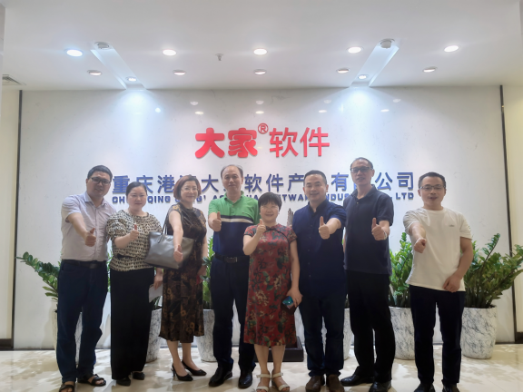 2022年7月5日上午,必赢766net手机版分党委书记罗惠玉应邀带队赴重庆港澳大家软件产业有限公司参加“产学研合作交流暨智能会计人才联合培养基地签约挂牌仪式”。出席签约仪式的领导及成员包括必赢766net手机版分党委书记罗惠玉、必赢766net手机版副院长黄辉、合作交流中心主任杜迎新、智能会计教研室主任王世杰,重庆港澳大家软件产业有限公司总经理肖飞、高级顾问毛华扬、技术总监蒲永波、生态合作部总监刘冬晴、人事专员王雪。