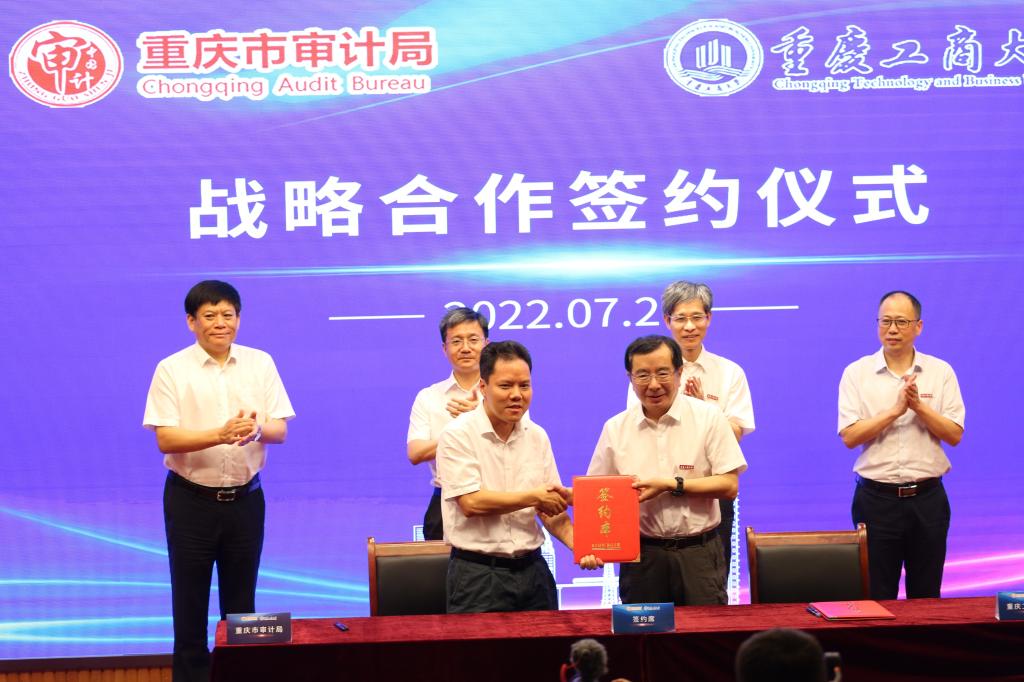 (图为重庆市审计局副局长戴希与重庆工商大学副校长赵骅签订战略合作协议)