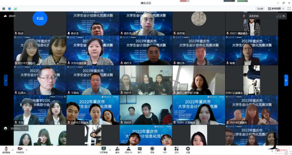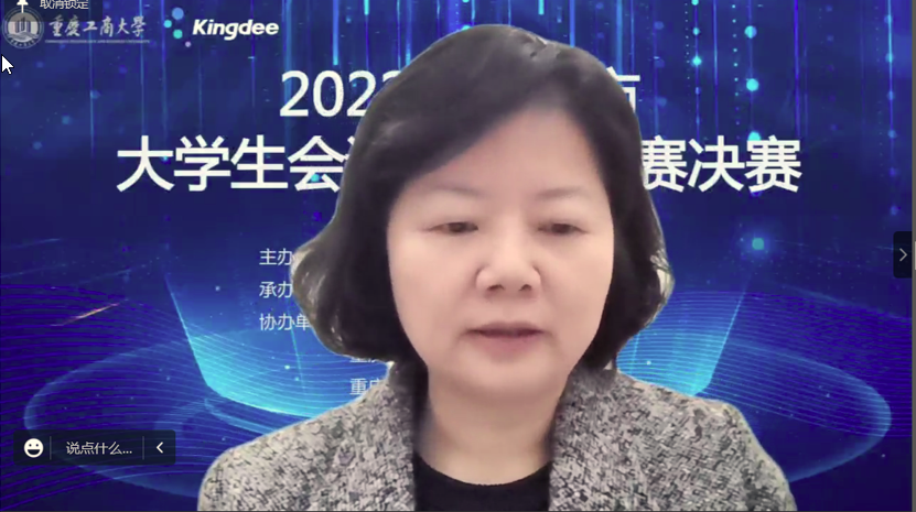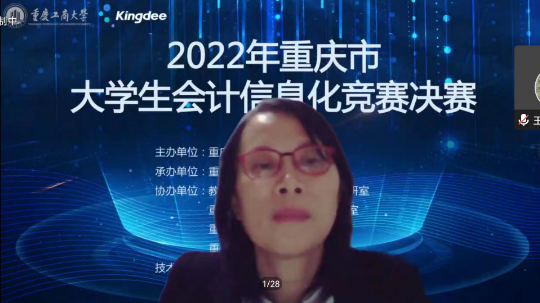 为积极适应数字化时代需要,推动高校财会类专业“新文科”建设,推进会计信息化教育教学改革,增进全市高校财会类师生交流,提升大学生会计信息化素养和实践创新能力,由重庆市教育委员会主办,重庆工商大学承办,教育部会计信息化课程虚拟教研室、重庆市成渝数智会计虚拟教研室、重庆市会计信息化名师工作室、必赢766net手机版协办,金蝶软件(中国)有限公司提供技术支持,2022年重庆市大学生会计信息化大赛决赛于11月19日在重庆工商大学顺利进行。全市共有18所院校的22支队伍通过初赛选拔进入到决赛。重庆市教委高教处处长蒋云芳、重庆工商大学校长孙芳城出席了决赛开幕式。本次决赛采取线上方式进行。