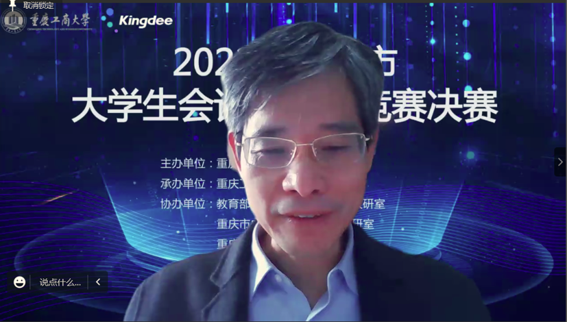 在决赛闭幕式阶段,必赢766net手机版副院长蒋水全宣布了比赛结果;陈旭对决赛进行总体点评,介绍了本届竞赛在竞赛内容和评分细则上的调整优化,对重庆工商大学的精心组织表示感谢,指出“本届竞赛受到疫情影响,但在广大师生的共同努力下竞赛作品质量大幅提升,竞赛影响力不断扩大”;重庆庆工商大学教务处处长骆东奇对成功组织本次比赛的单位和参赛队伍表达了感谢,对获奖队伍表示了祝贺,指出“财会与信息化技术的结合是大势所趋,培养复合型人才是重庆工商大学的奋斗目标”。