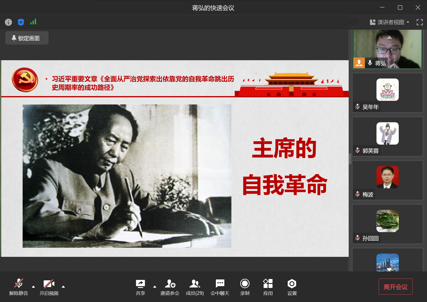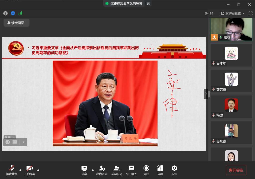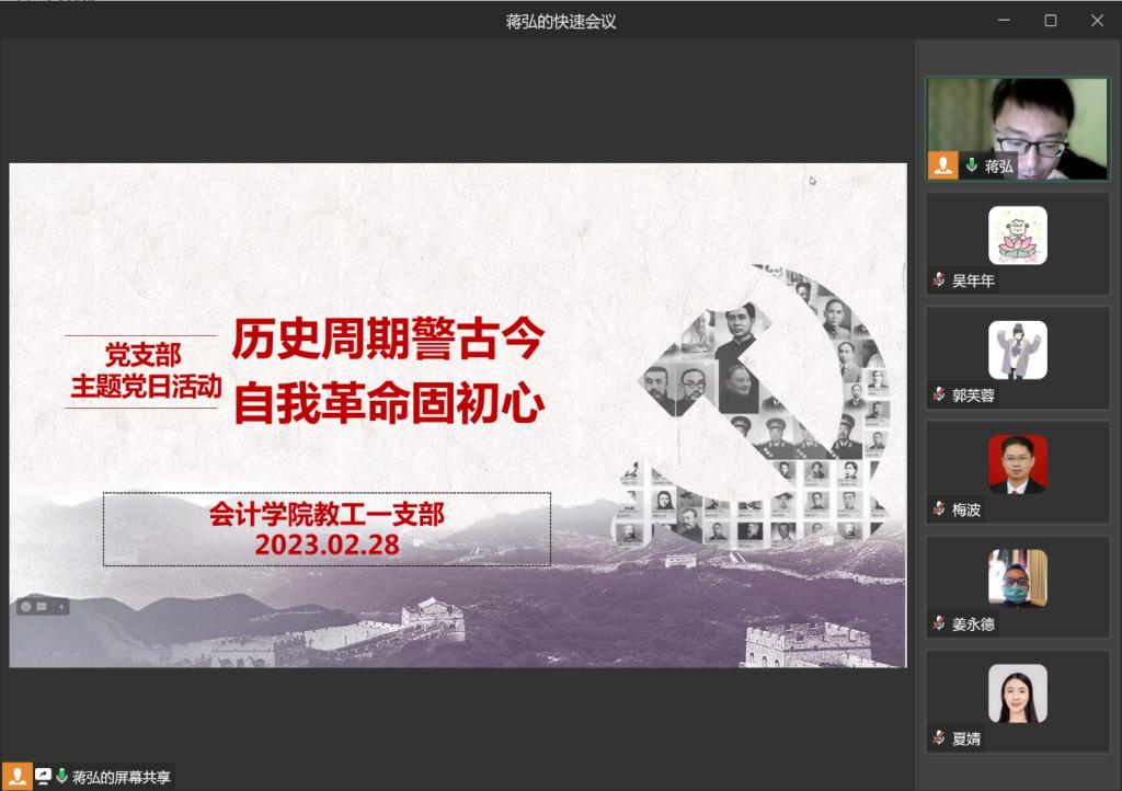 2023年2月28日,必赢766net手机版教工一支部开启了主题名为“历史周期警古今,自我革命固初心”的主题党日活动。活动由教工一支部书记蒋弘主持,一支部全体党员参加。