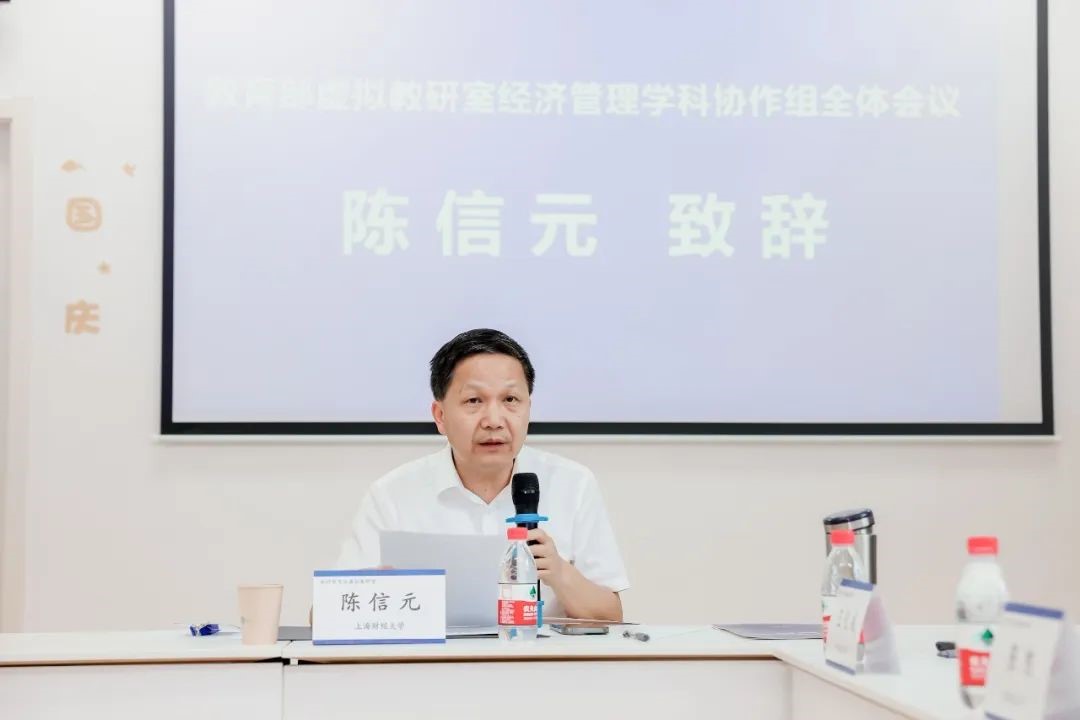 教育部虚拟教研室经济管理学科协作组组长、上海财经大学“会计学专业虚拟教研室”负责人陈信元在致辞中表示2023年虚拟教研室进入重点建设阶段,成立虚拟教研室协作组旨在加强学科内的交流共享,推动学科间的交叉协作,不断推进虚拟教研室之间的资源整合、互联互动、实现优质教学资源和教学成果共享。希望与会代表聚焦数智时代下经济管理教育的思考与实践,分享虚拟教研室建设的新理念、新举措、新模式,集思广益、凝聚共识、群策群力,高质量推动虚拟教研室经济管理学科协作组的建设和发展!