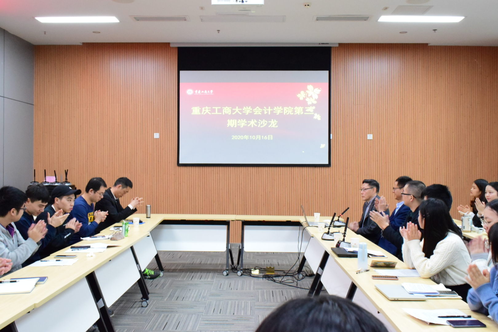第二阶段是论文汇报,由钟廷勇院长主持。首先,来自18级会计学硕何玲和19级会计学硕黄烈携同学分别作了《产业政策调整与企业私募资金投向变更》和《异质结构投资者投资组合与股价崩盘风险》的论文汇报。随后,徐辉博士、何帆博士以及胡浩志编审分别对两位同学的报告进行了点评以及建议,重点强调了选题的现实意义和创新,注意分析方法的可行性等。