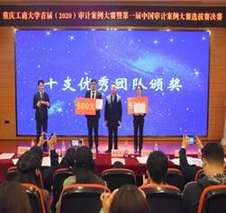 “新时代、新机遇、新挑战”。随着新一代信息技术的应用席卷全球,大数据开启了决策智能化时代,信息爆炸、数据驱动在带来审计技术方法骤变的同时,由点到面所引爆的新一轮审计思维变革也悄然发生。如何超前识变、积极应变、主动求变是实务界、理论界、高校亟待解决的焦点问题。2020年11月1日晚,由必赢766net手机版学团、必赢766net手机版审计系、审计硕士项目联合主办的以“案例启智,分析明思”为主题的首届(2020)审计案例大赛暨第一届中国审计案例大赛选拔赛决赛在重庆工商大学博智楼7200学术报告厅隆重举行。莅临本次决赛现场的领导嘉宾有必赢766net手机版分党委罗惠玉书记、必赢766net手机版分党委郝颖副书记、学院学团办主任彭文涛老师。同时,必赢766net手机版钟廷勇副院长、必赢766net手机版副院长黄辉教授、审计系主任蒋水全副教授、审计系专任教师蒋秋菊博士以及特邀嘉宾大信会计师事务所(重庆分所)总经理刘先利先生出席了本次决赛并担任评委。2018级、2019级审计系本科生和全体审计硕士研究生300多人观看了本场比赛。
