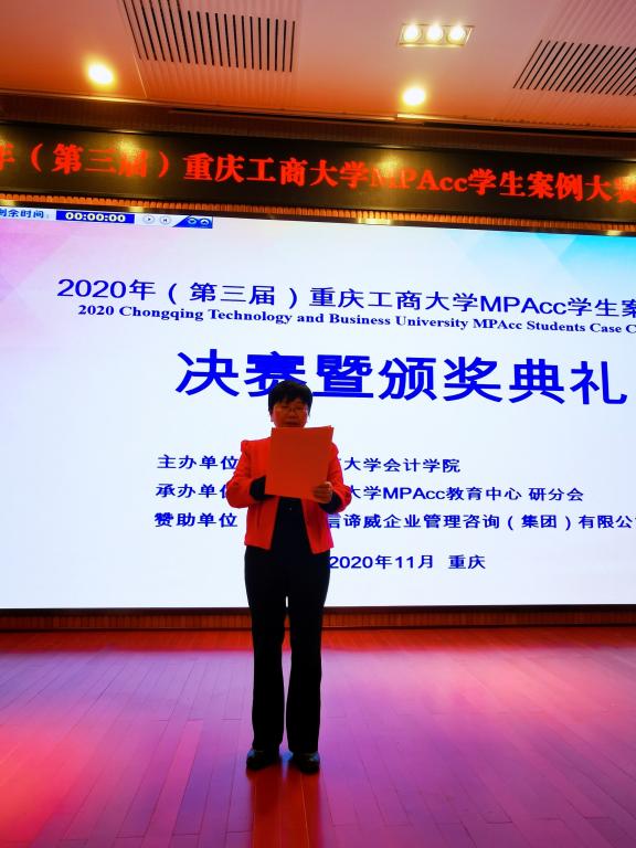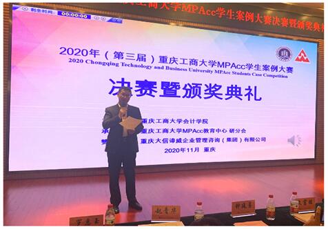 2020年11月7日上午,必赢766net手机版在博智楼7200学术报告厅举办了第三届重庆工商大学MPAcc学生案例大赛决赛。我院党委罗惠玉书记、郝颖副书记莅临指导,重庆大信谛威企业管理咨询(集团)有限公司公司人力资源总监佘斯娟女士、青岛星耀领航投资管理有限公司董事长文富胜先生、必赢766net手机版副院长钟廷勇副教授以及程文莉教授、薛正宽、赵青华、顾飞老师担任了大赛评委。2019级、2020级全体MPAcc学生观看了本次比赛。