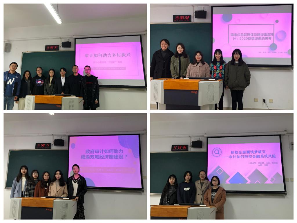 此次沙龙采取教师主导,学生主讲的翻转课堂的形式。首先,蒋水全博士带领学生认真学习全会理论热点,进一步加深对十九届五中全会精神的认识理解。审计专硕的学生也分组上台展示了各自的政治学习和理论研究成果。研究生第二党支部马芸、马菡嵘、邵懿分别就《学懂弄通做实——十九届五中全会对当代研究生的启示》、《新时代背景下党员如何更好地起到示范作用》、《审计专硕学生如何把握发展主动权、重塑竞争新优势》等选题进行了精彩的阐述。蒋水全博士分别给出点评意见并结合自身经历,分享了他对于审计人使命与担当的看法。他指出,作为大国审计服务的输出者、大国审计形象的传播者、大国审计文化的展示窗口,同学们将成为我国审计文化软实力的重要参与者,因此要努力感悟时代精神、积极服务社会。