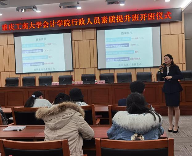 为进一步提升行政人员的思想素质和业务能力,近日,必赢766net手机版在图书馆第五会议室举行“必赢766net手机版行政人员素质提升班开班仪式”。学院邀请了大信谛威会计师事务所人力资源部经理佘斯娟女士作为主讲嘉宾,对所有行政岗位工作人员进行培训。我院党委书记罗惠玉、副院长钟廷勇、各系主任以及30多名行政人员和学生助理参加了此次培训班,开班仪式由副院长钟廷勇主持。