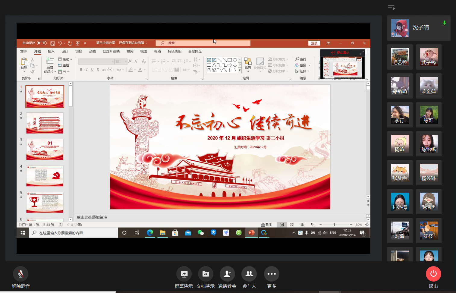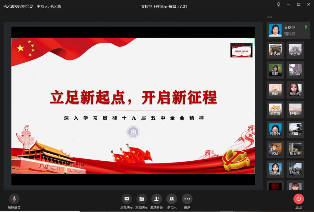 12月14日,必赢766net手机版研究生第一党支部通过企业微信平台开展了“立足新起点、开启新征程——深入学习贯彻十九届五中全会精神”专题党课,组织全体党员同志深入学习十九届五中全会精神。