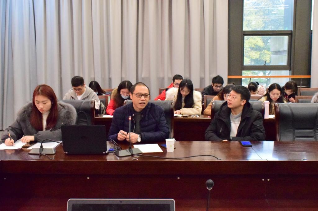 国胜铁主任作了题为“综合性社科类经管文章的特点及投稿的注意事项”的主题报告。他指出当前经管类文章应降低数学化、模型化的比重,增强全文的思想性,也为同学们详细讲述了在文章的整个写作过程中需要关注的注意事项。其中包括在前期收集资料时应把握社会现状,避免重复劳动;确定选题时应保证创新性、科学性、可行性;正文内容要保证内容的逻辑性,各部分内容的比例相对适中等。