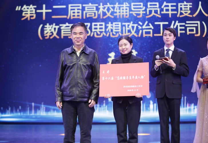 王婷老师作为全国辅导员年度人物的获得者发表感言,她从教师、辅导员两个角色谈了自己在不同角色中围绕“立德树人”核心的体会和感想,表示将在日常辅导学生中,为落实立德树人的根本任务,必须将价值塑造、知识传授和能力培养三者融为一体,全面推进课程思政建设就是要寓价值观引导于知识传授和能力培养之中,展现寓道于教、寓德于教、寓教于乐的辅导培育方针。