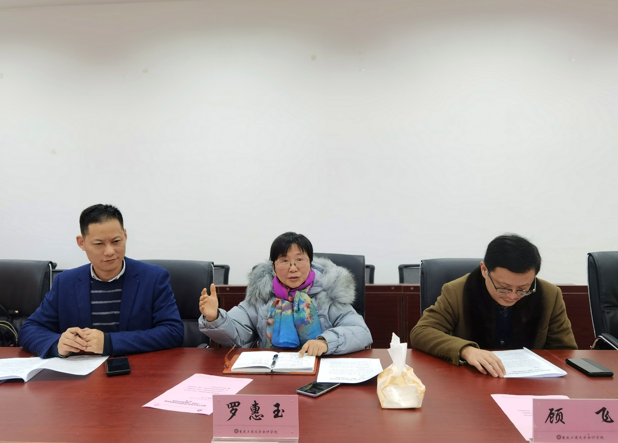 为全力做好研究生教育发展“十四五”规划编制工作,1月6日上午,我院在明德楼2019会议室召开了研究生教育发展“十四五”规划意见征求会。学院分党委书记罗惠玉,副院长钟廷勇,学院各系主任,综合办主任以及研究生工作秘书参加了本次会议。会议由MPAcc教育中心负责人陈欢主持。