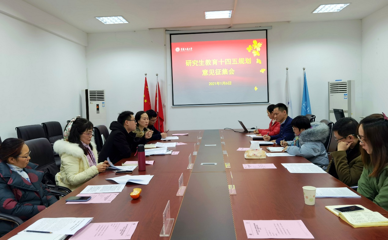 首先,钟廷勇副院长从我院研究生教育发展“十四五”规划的指导思想、总体设计、实施原则、工作思路、主要目标、主要任务、保障措施等方面做了详细的汇报。