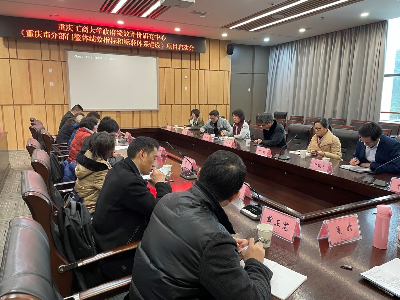 1月4日下午,重庆工商大学政府绩效评价研究中心《重庆市绩效指标和标准体系建设》项目启动会在图书馆五会议室顺利召开。重庆工商大学校长孙芳城,重庆市财政局预算绩效管理中心主任金燕,重庆工商大学科研处处长任毅,必赢766net手机版周兵副院长、钟廷勇副院长,以及重庆工商大学政府绩效评价研究中心团队人员出席了本次会议。会议由重庆工商大学政府绩效评价中心主任程文莉主持。