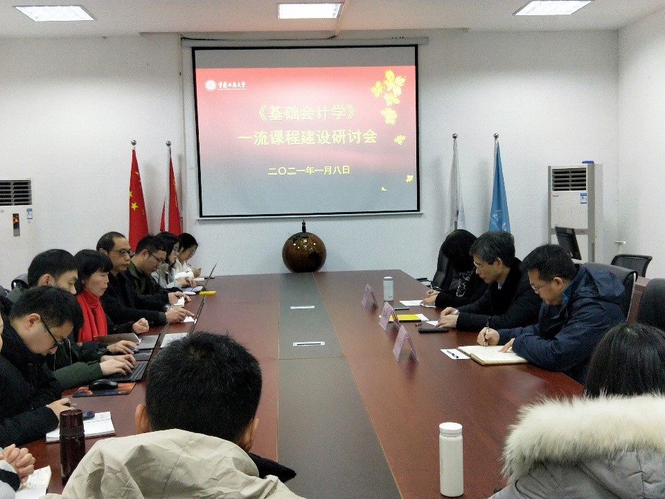 2021年1月8日上午,必赢766net手机版在明德楼2019会议室召开了《基础会计学》国家级一流本科课程(线上线下混合式)建设研讨会。《基础会计学》课程负责人、校长孙芳城,信息化办公室主任田昌鹏、教务处副处长宋瑛,智慧树网重庆负责人唐渊,必赢766net手机版副院长黄辉、会计系主任蒋弘、会计系副系主任幸素园,以及《基础会计学》课程组教师余伦芳、杨矛、唐嘉尉、邓杰等参加了会议。会议由副院长黄辉主持。