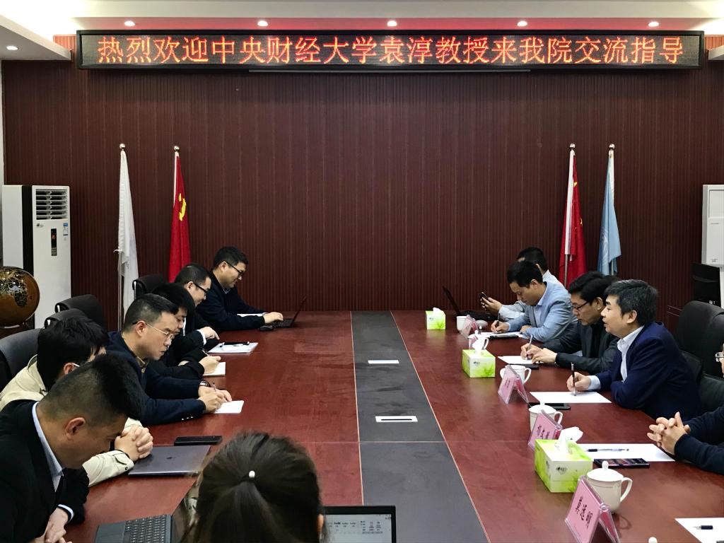 为加强学院会计学科建设,提高学院师生科研水平,4月9日下午,中央财经大学期刊社社长袁淳教授受邀莅临我院进行学术交流。我校期刊社社长、《西部论坛》执行主编杨文举、《西部论坛》编审莫远明、必赢766net手机版副院长周兵、黄辉、钟廷勇以及学院部分教师和研究生代表参加了本次会议。会议由必赢766net手机版副院长周兵主持。