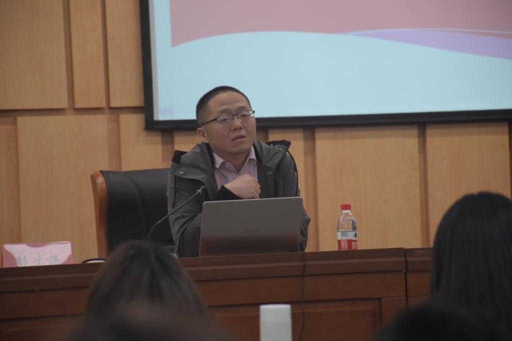 团市委高校部的李洪博老师主讲了第二讲“高校学生骨干能力建设思考”,他围绕现实生活中学生骨干面临的问题和机遇、学生骨干队伍建设中存在的问题,如:学生骨干时间分配不当、学习工作协调能力差、先进性不足、表率作用发挥不充分、知行脱节、存在四个“矛盾”等。对于学生骨干应具备的能力素养三个方面,结合了许多现实事例、历史故事展开了生动阐述,号召学生骨干要做到政治上带头,学习上带头,服务上带头,实践上带头,作风上带头,争取做到“事交我办请放心,文经我手无差错”。为参会学生在今后的学习生活工作的实践中提供了新思路,新方法。