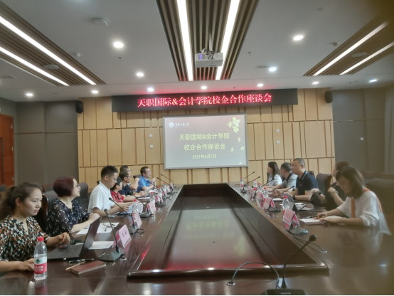 2021年6月7日下午15:00,天职国际&必赢766net手机版校企合作座谈会在图书馆五号会议厅室顺利举行。天职国际会计师事务所合伙人、重庆分所所长童文光,总部培训部总监、天职学院负责人胡瑜涛,重庆分所合伙人刘宗磊、培训部经理胡玉廷、人力资源部经理王小芬参加座谈。我院党委书记罗惠玉、副院长黄辉、副院长钟廷勇及学院相关负责人参加会议。会议由钟廷勇主持。