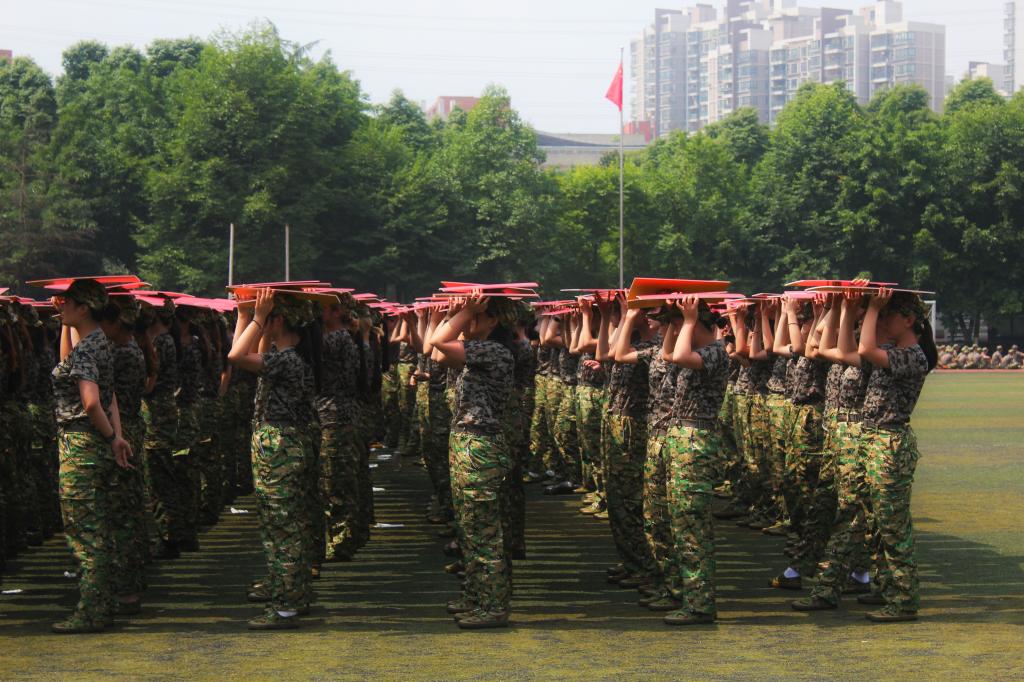 绿军帽、迷彩服、绿胶鞋,构成了一道美丽的风景线;红跑道、绿操场、迷彩绿……在灼灼烈日下,英姿飒爽的女生方队以一往无前的气势,豪迈地汇到了一起。