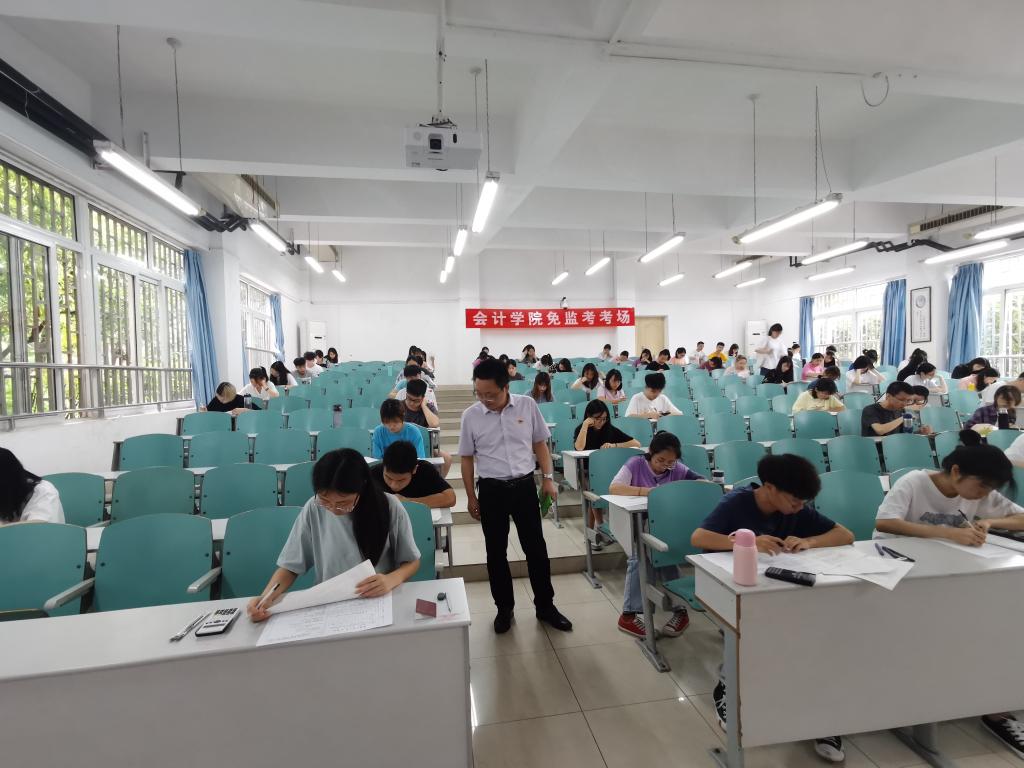 7月5日、6日,2018级会计学一、二班,2019级智能会计班,2019级会计学一、二、三班,2019级财务管理一、二班,8个班级350余名同学参与了《内部控制》、《财务管理学》、《高级财务会计学》三门课程的免监考。学校教务处骆东奇处长、党委学工部申卫东部长、必赢766net手机版分党委罗惠玉书记、郝颖副书记等有关领导进行了巡考。