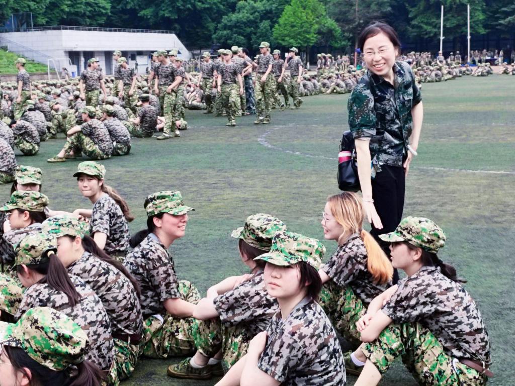 训练中,是谁与同学们一起日晒雨淋?是烈日下风雨中汗流浃背的教官。教官对同学们张驰有度,亦师亦友。教官们严格指导每一个动作,不放过每一个细小的差错;严极的要求,铁般的规则,教会同学们什么是严谨自律。整顿军容,训练军姿,以秒记时,让同学们充分感受军人的血性。同学们在训练,他们也在训练;同学们在休息,他们则在开会加班。但是,你看那个台上轻声哼唱的“铁血硬汉”,是否有“猛虎细嗅蔷薇”的反差萌;你看那个深夜加班排方阵的教官,是否有倾尽全力,为我们留住美好的坚持;你看那个声音嘶哑,润喉糖不断的教官,是否体悟到了什么是呕心沥血。