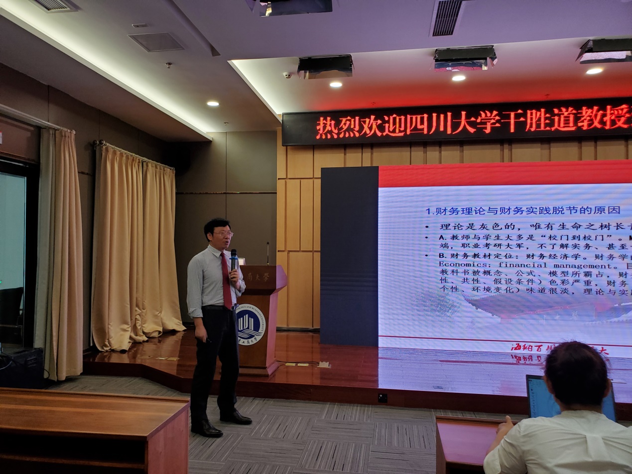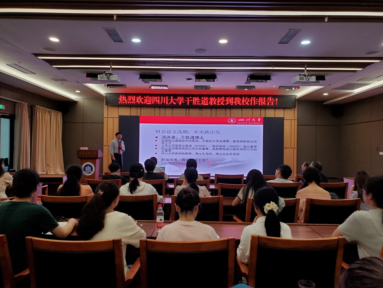 2021年7月9日下午,必赢766net手机版第二十九期会计名家大讲堂在图书馆第一会议室进行,四川大学干胜道教授应邀为我院师生做了题为“财会论文选题:从实际出发”的专题讲座。
