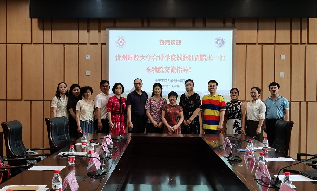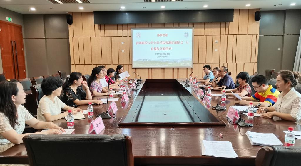 6月29日下午,贵州财经大学必赢766net手机版副院长钱润红、副院长邱静、会计系副主任周松、财务管理系副主任杨昀、审计系副主任刘俊萍、学科建设管理科副科长朱益、党政办公室负责人黄琛一行7人来我院访问交流,我校我院党委书记罗惠玉、副院长黄辉、会计系主任蒋弘、财务系主任蒋水全、审计系主任王杏芬、MPAcc教育中心主任陈欢、综合办教务秘书李长艳在图书馆第五会议室与客人进行了座谈。