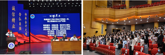 2020级全体同学进行了宣誓,许下了会院学子的庄严承诺:尊师重学,求是求真,尚科学之理性;诚信精业,持筹握算,昌会计之文明;含弘自强,经邦济民,担社会之伟任!时不我待,不作无益彷徨;岁月如歌,不作懦弱退缩;才高行洁,不负青春理想!会议的最后,全体师生奏唱了重庆工商大学校歌。