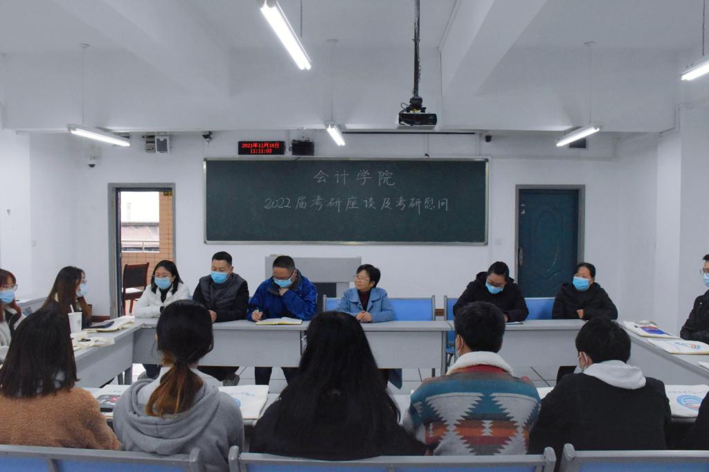 座谈会上,考研学生依次发言,对学院和老师对同学们的关心表达了感谢,主要针对近期班级考研同学生活、学习状态、心理等方面展开,同时希望在图书馆考研座位、走读学生疫情防控、毕业论文和毕业实习、考研压力大等方面提供支持。